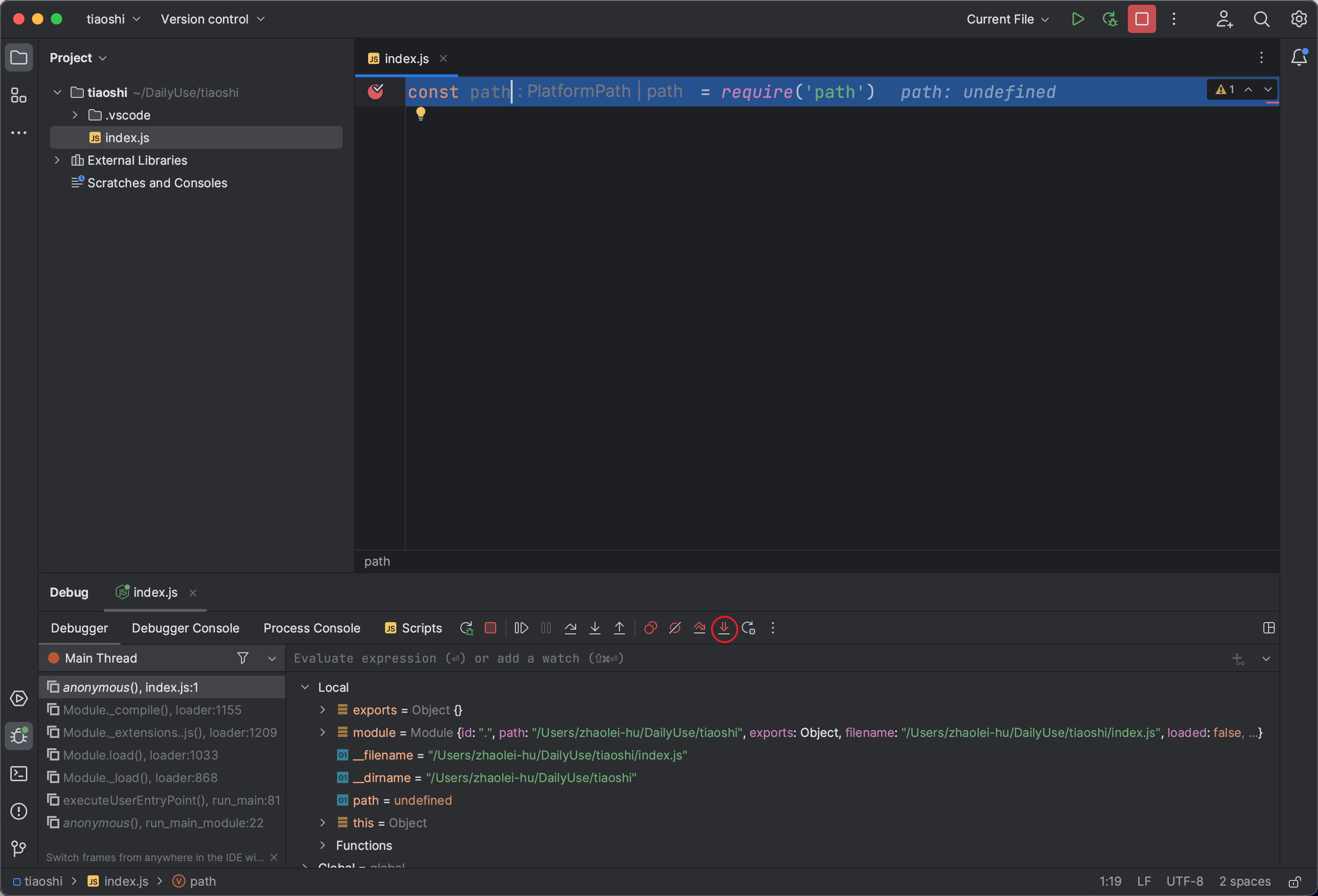 我们接下来就通过require引入一个内置库,来演示如何调试