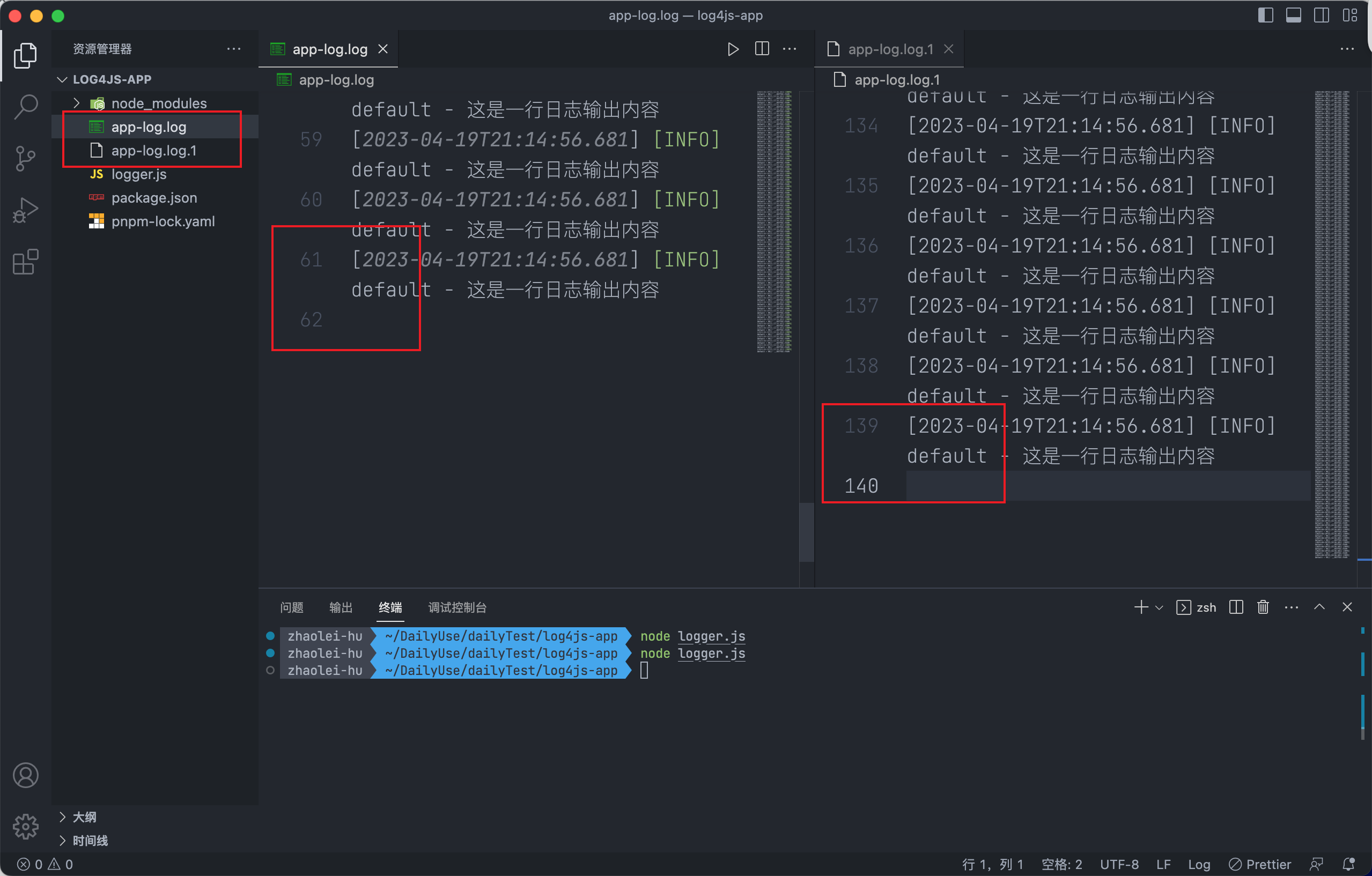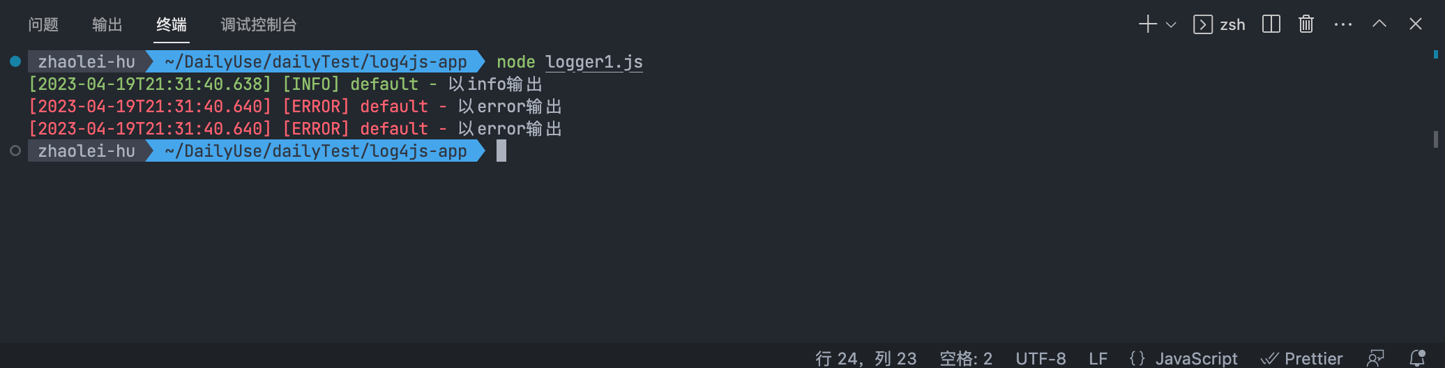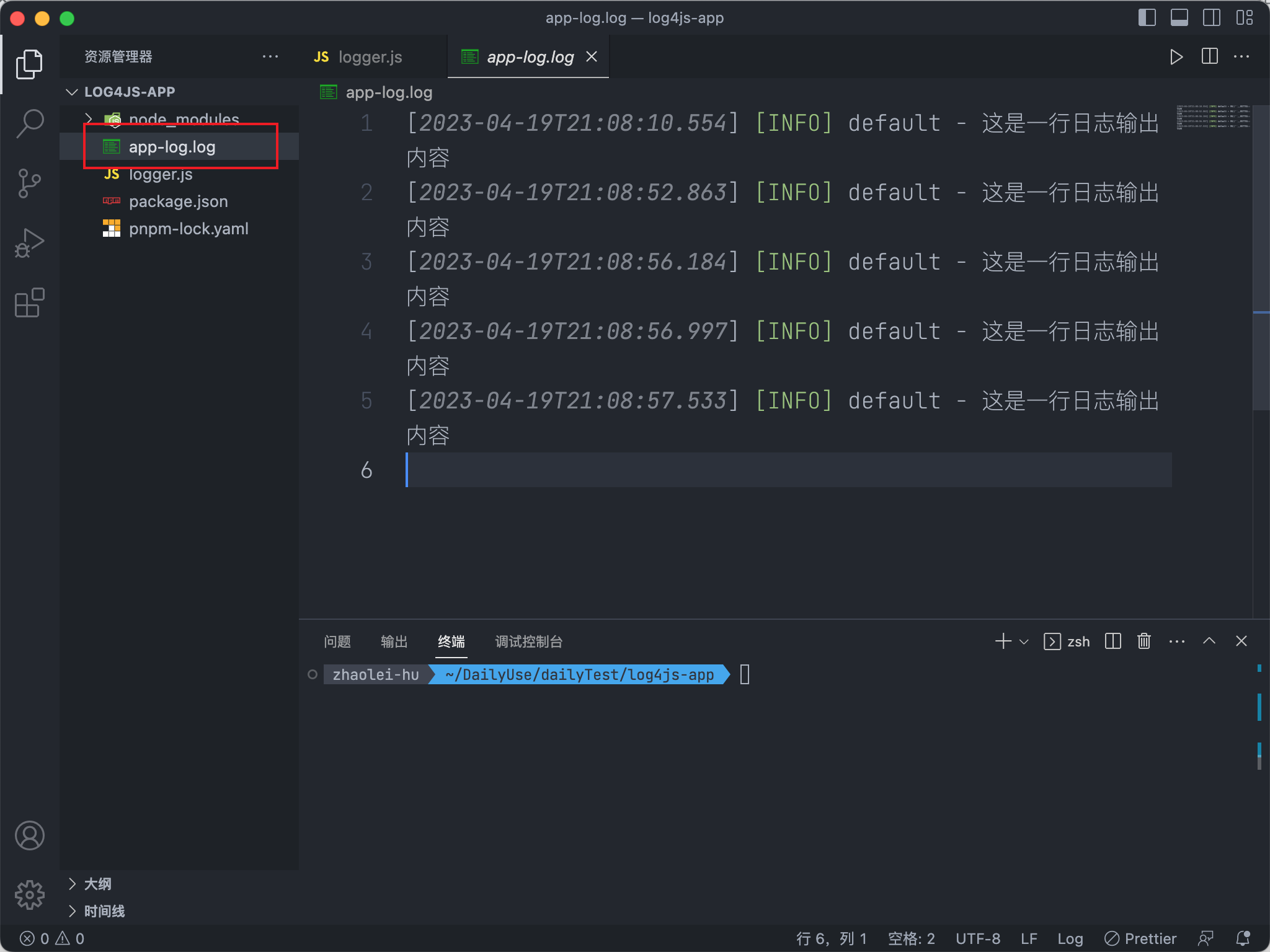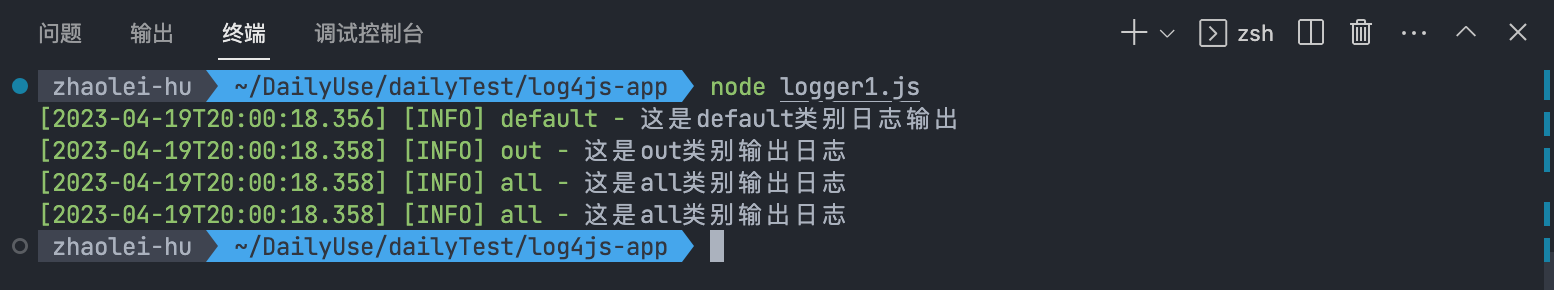 安装log4js输出第一条日志