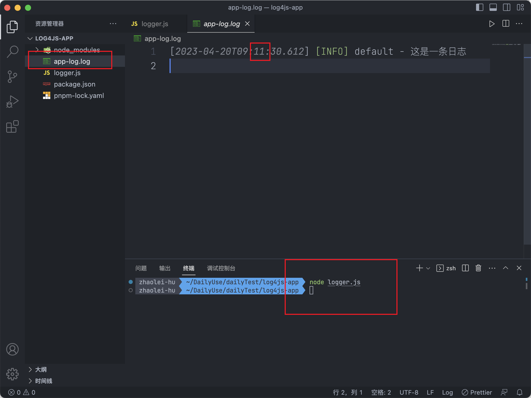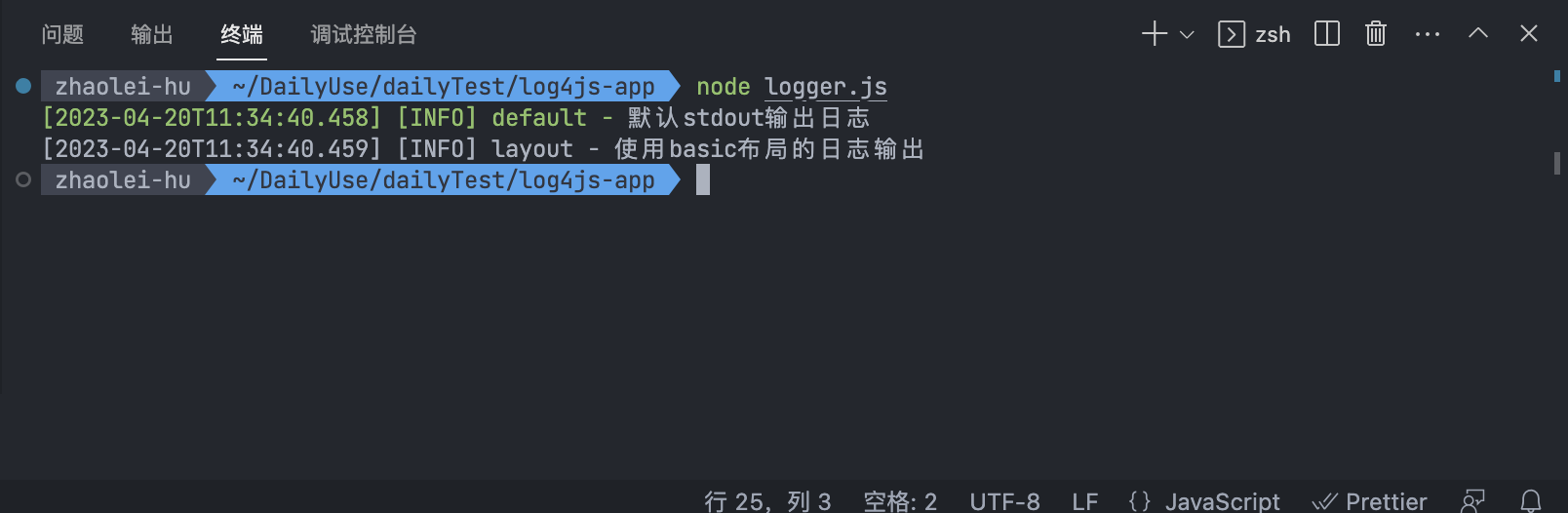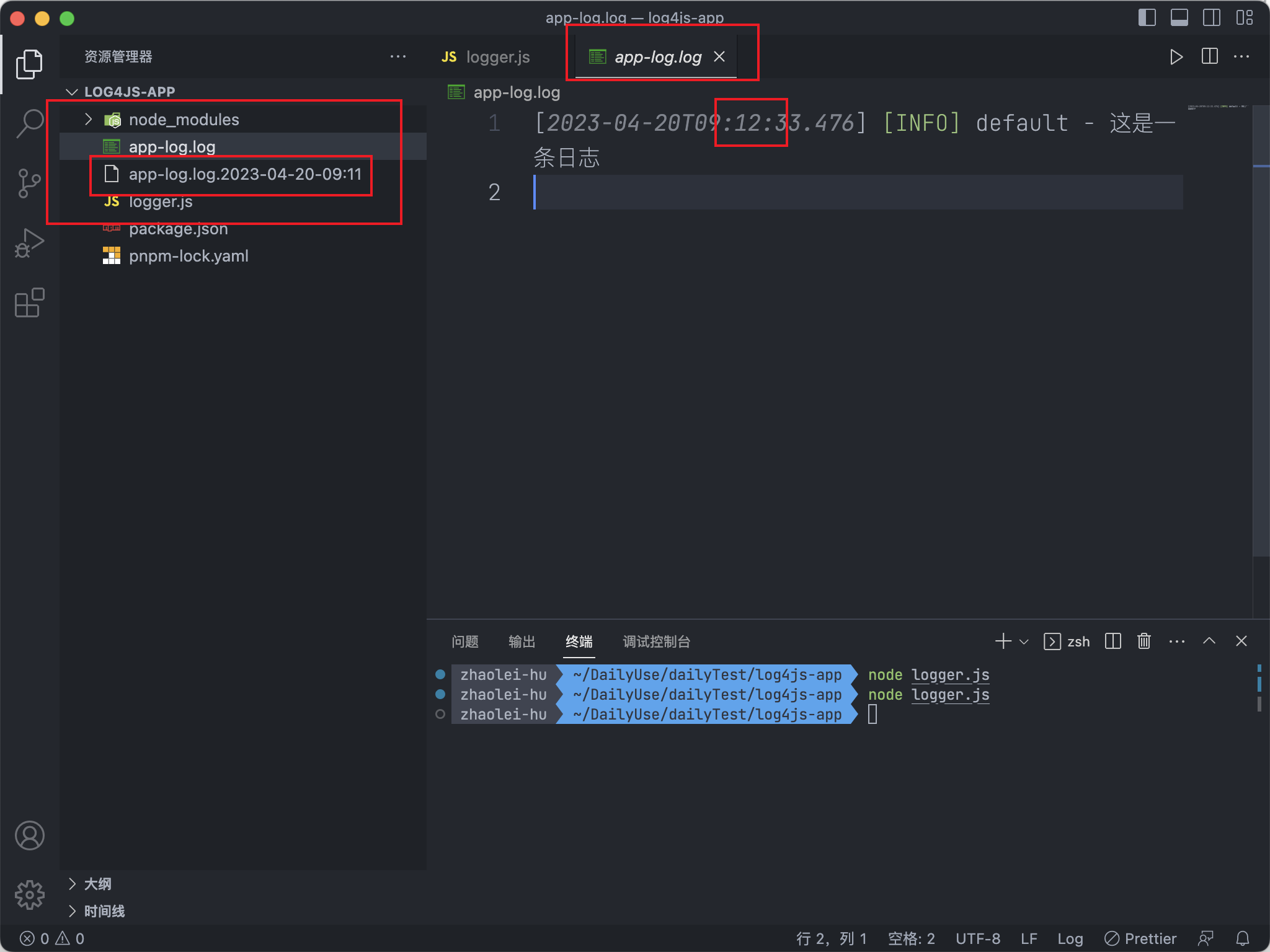 安装log4js输出第一条日志